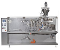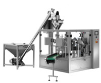旋轉(zhuǎn)式給袋式自動包裝機(jī)適用于平面袋,自立袋,拉鏈袋等各種形狀的熱封的復(fù)合袋.